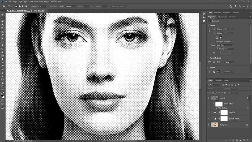 To create our halftone pattern, we need to combine two filters found in Photoshop’s Filter Gallery.